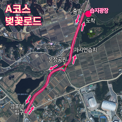 A코스 벚꽃로드 : 습지광장-운정공원-경포대입구-가시연습지-습지광장